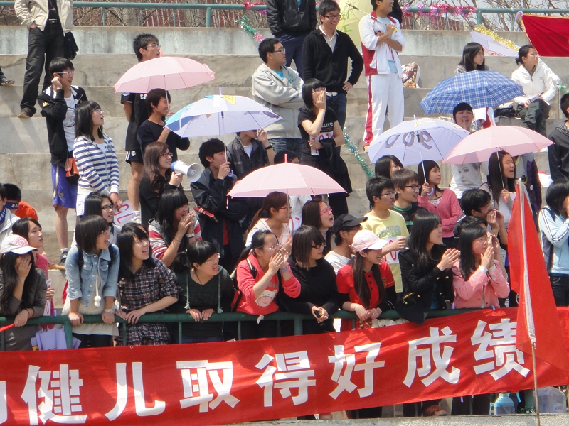 勇夺男子4*400冠军、女子4*4亚军、男子4*100亚军、女子4*100冠军。而个人项目中,杨建成包揽了男子5000米、3000米长跑的冠军;王玥同学也拿下了女子400米以及跳高两项冠军;王倩在女子100米栏、100米中分别夺得第一和第二的优异成绩。场上运动员挥汗如雨,场下拉拉队也热情澎湃。他们不仅为运动员们呐喊助威,为他们传递心灵的力量;还为他们提供了细致入微的后勤服务。在大家的共同努力下,禁漫