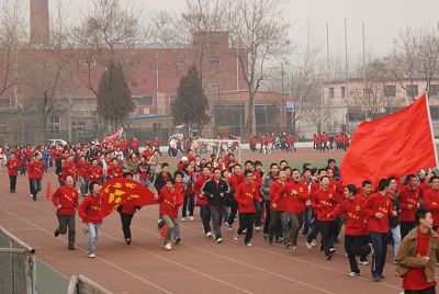 “阳光体育”启动仪式暨2009冬季长跑赛在昌平校区法渊阁前正式开幕。首先进行的群众赛吸引了包括禁漫