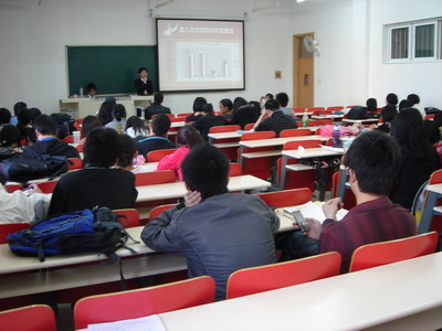 宣讲中,金田同学鲜活地引用了招聘会现场的写实照片、生动形象的漫画图片以及我校07至09年毕业生的人数比例图等展示了当前大学生就业形势的严峻,综合分析了金融危机、高校扩招、部分大学生就业观不正确等导致目前大学生就业难的原因,介绍了我校的相关的就业指导政策。他指出我校开设职业规划课程,举办各种就业讲座,召开各种就业培训活动,旨在帮助学生端正就业态度,提高就业能力,指导学生成功就业。作为大学生,面对就业的沉重压力,要保持自信、乐观、沉着、谦虚、的良好心态,多听取经验较为丰富的老师的建议,多向已经成功就业的往届毕业生取经,夯实基础,提高能力,加强自身素质建设,为迎接就业做好充分的准备。
