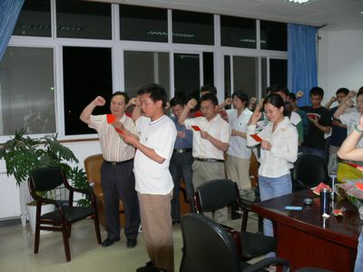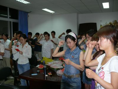 会议开始,卢少华同志首先代表学院党总支和领导班子对各位毕业生党员一年来对学院的支持和贡献表示感谢,接着简要而又生动地介绍了文明离校作为我校毕业生的一个传统及其重要性,并对毕业生党员们在离校期间所肩负的责任提出了期望。在接下来的讨论时间里,同学们畅所欲言,就文明离校、师生交流、学院学科建设等各个方面提出了许多宝贵的意见,也许是因为即将离别,不少同学还纷纷为四年同窗好友们送上了真挚的祝福以及表达了对学院老师们的感谢,会议一直进行到将进十点,参加会议的每一位毕业生党员都发了言。叶耘老师和邢小兰老师也向大家表达了感想并送上了祝福。会议最后,在国际歌的旋律声中,参加会议的全体党员一起重温了入党誓词,会议在一片热情友好,依依惜别的氛围中圆满结束。