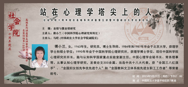 禁漫 十周年院庆高端系列讲座之五:表情与微表情研究