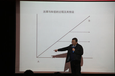 讲座伊始,孙立平教授即由一个问题引入,“过去的这一年,是改革开放30年来我最为困惑的一年,那么这个困惑是什么?”他指出,其困惑,一在改革;二在发展。从社会现实和自身交流经验出发,孙立平教授首先谈及浙江中小企业的倒闭、银行的压力、总理的担忧,明确前年和去年经济增长的因变量差异在于经济结构的巨大变化。在“改或不改,但改革方向明确”的困惑到“如何改,改革遇到弯路”的困惑转变下,孙立平教授通过一个中等收入陷阱的项目对发展的困境做出了一种解释。