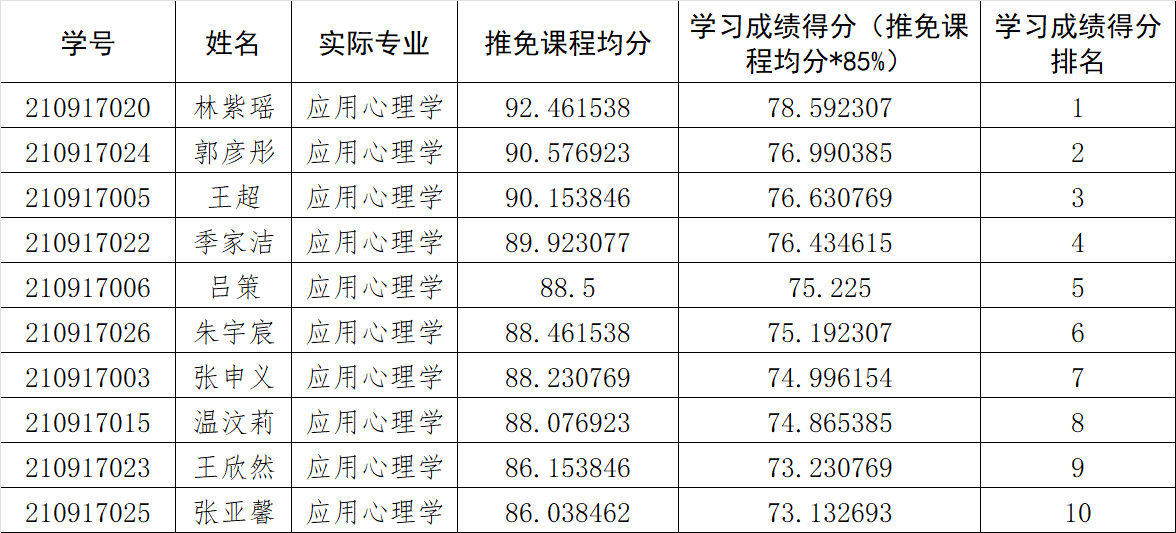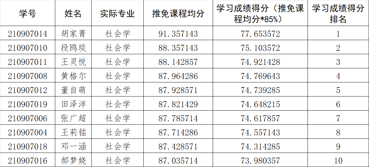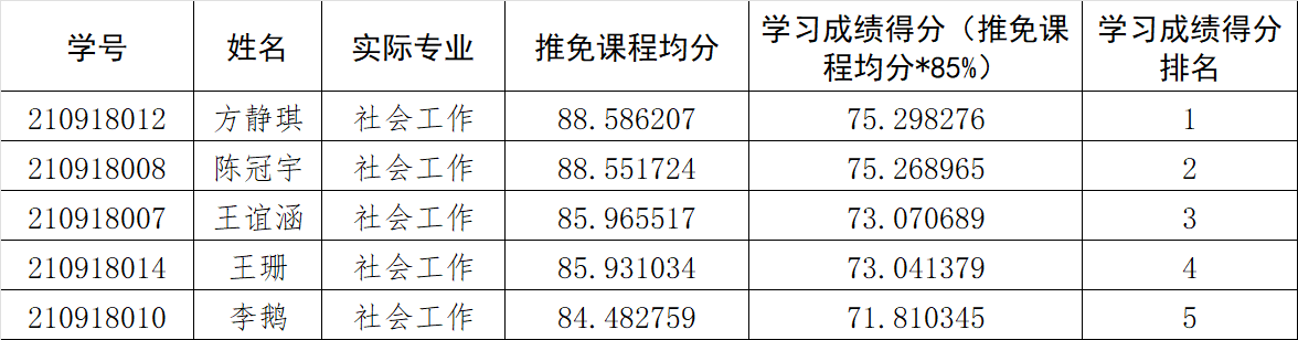 根据《禁漫 推荐优秀应届本科毕业生免试攻读硕士学位研究生办法》(法大发〔2019〕195号文件)与《关于做好2025年推荐优秀应届本科毕业生免试攻读研究生工作的通知》要求,现对禁漫 2021级社会学、应用心理学与社会工作专业本科生推免学习成绩排名进行公示,依照要求公示排名人数不低于各专业基数的35%。