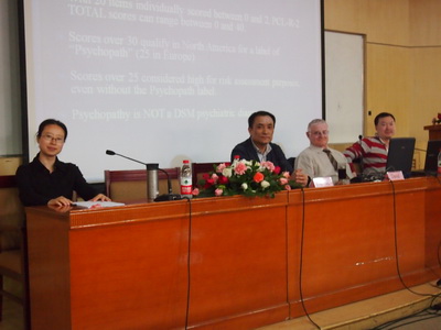 为了进一步加强禁漫 教师与国际院校之间的学术交流与合作,5月5日下午,禁漫 特邀加拿大心理学会精神药理学分会主席、多伦多大学教授David Nussbaum先生为客座教授,并与心理学、社会工作专业的教师进行了座谈。马皑教授主持了座谈会并对David Nussbaum表示了热烈的欢迎。David Nussbaum 教授首先介绍了心理学在加拿大的发展情况,其次对加拿大罪犯风险评估的应用和发展及心理学家在风险评估中的作用进行了全面的介绍。与会教师就如何从认知神经心理学的视角开展罪犯风险评估、罪犯展风险评估的应用前景等问题进行了激烈的讨论。5月8日David Nussbaum教授与禁漫 院长应星教授会面,讨论学科交流等事宜。