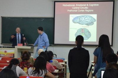 聘任仪式结束后讲座正式开始。纽思姆教授从加拿大暴力刑事犯的犯罪特点为切入点,他提到暴力犯罪的形成的三个理论:社会学习理论、一般攻击模型理论和进化论理论,并且具体地阐述了其内涵与意义。随后,纽思姆教授介绍了加拿大罪犯风险评估的发展历史与现状,比较了前四代风险评估系统的优势和不足,重点提出了第五代风险评估系统,该系统在个人生活史、情绪、人格、认知等方面评估的基础上加入了神经心理学的评估手段(脑电图、自主神经活动、大脑皮层活动等)而使其客观性和科学性大大提高,为在押犯人的风险评估提供了可靠的保障。风险评估不是一项简单的测试,而是整合了档案管理、生理心理测量、问卷评估等方式的综合性系统工程,只有对在押人员进行科学的风险评估后,才能有效确保其在重新走入社会后不再犯罪,从而有效地尊重每一个人的生命权与自由权。