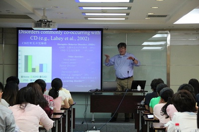 布莱尔博士报告的主题是:青少年品行障碍的神经心理机制。报告中,布莱尔博士提出了一个新的攻击特质——冷酷无情特质,并对精神病态者认知功能的生理性损伤、与攻击相关的精神障碍、品行障碍及其并发症以及一些情绪问题的脑功能区等问题作了深入探讨。