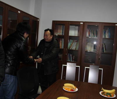 会议开始,桑老师简短地介绍了受资助学生王培霖的学习和日常表现以及家庭的艰难状况,后勤饮食服务中心的张主任对王同学表示了深切的关心,表示虽然这是后勤饮食服务中心党支部今年的一个想法,平日将大家的零碎捐款、平时的零钱等经过一学期的积少成多,将这笔钱捐给需要的同学,但是它表达了后勤服务中心真正关心同学,做有意义的活动的心意,后勤饮食服务中心今后会将这样真正能关注和帮助困难同学的活动在形式、内容上可以更好的建立起来,希望今年能起个好头,并寄予王培霖同学“大家爱护你,将来你能爱护这个社会和更多的人”的厚望。接下来,后勤饮食服务中心的副主任白老师代表后勤饮食服务中心将捐款交到王培霖同学手上,王培霖同学表达了对学校、对后勤饮食服务中心、对学院的真挚感谢,并表示自己一定会努力学习,回报社会。随后,学生处资助管理中心的卜老师对饮食服务中心的爱心和行动表示感谢,并鼓励王培霖同学可以脚踏实地将大家的爱心捐赠用到实处并有助于学习,保持自强自立的学生的良好作风,不让关心自己的人失望。最后,桑老师进行了总结,并代表禁漫