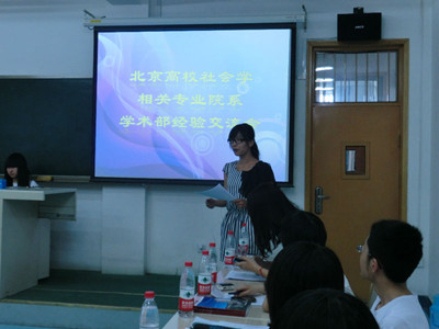 交流会包括他山之石与众志成城两个环节。在他山之石环节中,各高校依次以ppt或视频播放的形式,向与会人员展示自己所在学校社会学及相关专业的社团学术活动成果,场上场下进行了良好的互动。随后开始的众志成城环节中,各高校围坐成一起就组织设立、信息平台、信息共享、社会实践、经验交流等方面展开了激烈的讨论。最后,各高校代表最终基本达成了共识,并表示期待更长期的合作。