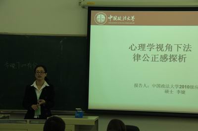 的硕士李婕报告了“理学视角下法律公正感探析”的研究,她指出将心理学关于公正感的研究移植到法律领域中,为解决目前我国大量上诉、上访案件提供新的思路。随后,杭州师范大学硕士生杨屹灵做了“关于法庭调解态度的实验研究”的报告,用心理学的量化的方法解决司法实践中法庭调解的问题。最后,甘肃政法学院硕士生:欧阳永菲报告了“论心理测试技术在民事瑕疵书证审判中的应用”,再次向研究生们介绍了心理测试技术的不同应用领域。