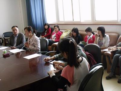 综合办公室桑迪老师和分团委王甲同老师出席了本次大会,即将在我校心理咨询中心实习的15名心理学专业的学生参加了此次会议,会议由桑迪主持。