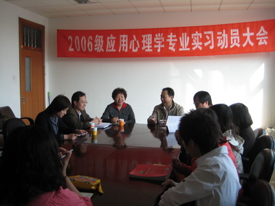 首届应用心理学专业学生的专业实习,学院高度重视,多次召开相关会议,商讨实习相关问题。院领导和专业老师经过多次与实习单位协商,最终确定三个实习单位,分别为我校心理咨询室、回龙观精神病医院和中国心理网。本次实习动员会是针对在校实习的16名学生,实习时间为8周,实习的主要内容是对我校学生进行团体咨询和辅导。