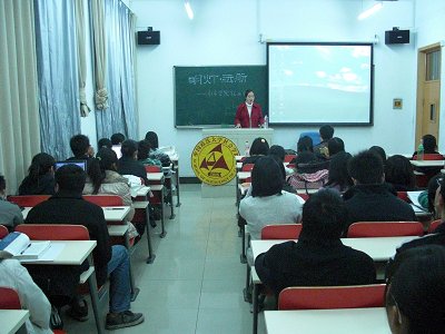 07届毕业生鄂璐为同学们介绍找工作的经验。