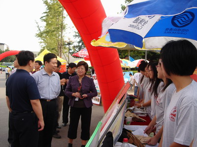 党总支书记卢少华、分团委书记邢小兰、副书记王甲同也来到迎新展台,关怀新生。