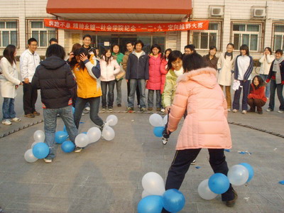 在主持人喊开始之后,各班的第一个小分队就飞奔向地图上标记的各点。对于大一的同学而言,定向越野是一项新的、具有一定挑战的活动。由于他们对学校还不太熟悉,地图上的一些点就比较难找,但是他们并没有因此泄气,反而更加努力的在目标附近仔细搜索。如何才能在最短的时间内以最快的速度找到放在各点的标志物,是所有选手面对的最大问题。各代表队的参赛选手们都使出浑身解数,用敏锐的观察力发现隐蔽的标志物。当每个小分队的选手气喘吁吁的回到出发点时,整队的选手都会爆发出阵阵欢呼。在出发点守候的啦啦队也不闲着,他们积极投入到穿插的小游戏中。踩气球,绑腿跑,大家都玩得不亦乐乎。