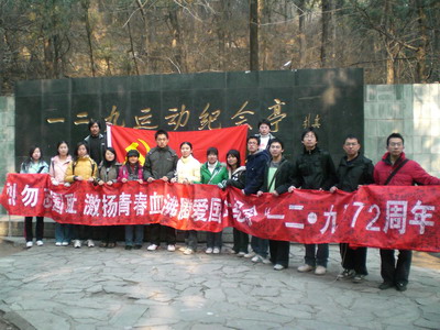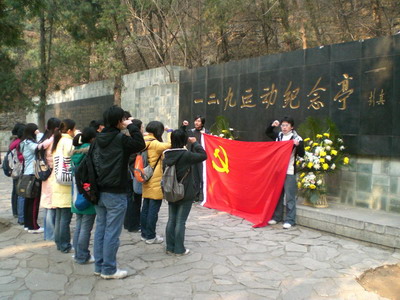 2006-2007级党支部全体党员和积极分子前往位于北京植物园的“一二·九”纪念亭,以参观访问的形式纪念“一二·九”北平学生爱国运动72周年。