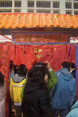 的游园活动区是装饰着大红色的中国结的“龙门客栈”。从游园开始,前来排队的人就络绎不绝了。八点以后,“客栈”更加热闹,人们挤满了小小的客栈,等候的队伍排了长长的一队……在这里,同学们可以享受到推杯子的刺激、打保龄的惊心动魄和套圈得奖品时的喜悦。每个参与游戏的人收获的不仅仅是奖品,更是一份快乐和迎接新年到来的喜悦和希望。另外,禁漫
