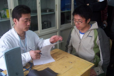 2005级学生一早在校医院门口集合,领着献血报名表,等候体检。学生会志愿服务者早早到达校医院,精心布置服务台,并倒上一杯杯热腾腾的红糖水,并为献血的同学们准备了糕点、鸡蛋等营养品。禁漫
