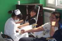 2005级学生有组织地排队进行体检,各项常规检查有条不紊地进行。同学们陆续进入采血室献血。领取献血证时,灿烂和自豪的笑容绽放在他们的脸上。他们表示无偿献血是履行社会责任和实现个人价值的体现,是非常有意义和神圣的事情。随行而来因身体原因未能参加献血的同学也在旁服务,并为献血的志愿者们拍照留念,记录下了这生命中重要的一刻。最终献血的同学和没能献血的同学,以及忙碌的服务者,都在为这崇高的公益事业尽自己的一份力量。