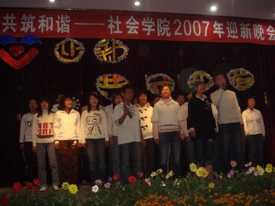 的师生们齐聚学术报告厅,举行了迎接07级新生晚会。党总支书记兼副院长卢少华老师、分团委书记邢小兰老师、综合办公室桑迪、刘洪备老师、分团委王甲同老师出席了此次晚会。
