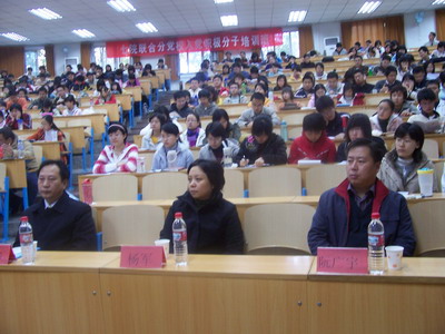 卢少华书记在开学典礼上发表了重要讲话。他首先向参加本期培训的入党积极分子表示祝贺。他说,参加入党积极分子培训的学员都是经过班级推荐的优秀学生,大家在培训期间要端正学习态度,认真学习相关知识,提高自身的理论素养,真正做到从思想上入党。学习的关键是把握两点,一是加强理论学习,通过学习,使自己的理论水平上一个新的台阶;二是注重理论联系实际,既要联系我国经济、政治、社会发展的实际,也要联系我们自身的意志、思想及心理的实际,以便在学习和工作中有明确的方向。结合十七大的召开,卢书记提出了几点要求:以十七大精神为一面旗帜,确立每名积极分子未来发展的正确方向;以十七大精神为一种新标准,规范每名积极分子的思想和行为;更要以十七大精神为强劲动力,推动每名积极分子尽快达到标准,加快进步的步伐。