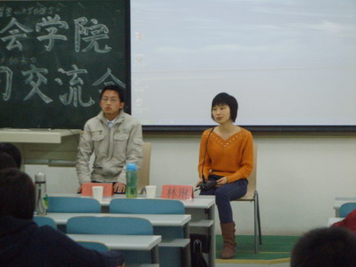 04级林琳、马学军,05级张伟、冒云,06级钟小小、刘洁六位同学,向07级新生介绍学习、工作的经验与心得,以帮助新生明确大学学习方法与学习目标。