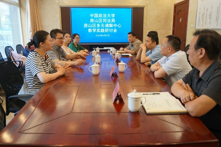 与房山区司法局和房山区矛盾纠纷多元调解中心举行教学实践研讨会。参会人员主要有:房山区司法局局长张劲楠,副局长肖红云,基层与调解科科长及识宇,北京市人民调解协会副会长、房山区矛盾纠纷多元调解中心主任李刚,副主任穆希存,禁漫
