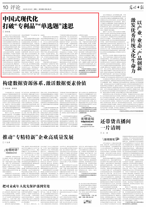 实现现代化是近代以来中国人民矢志奋斗的梦想。经过数代人的不懈努力,中国共产党领导中国人民成功走出中国式现代化道路。习近平总书记在学习贯彻党的二十大精神研讨班开班式上强调,中国式现代化,深深植根于中华优秀传统文化,体现科学社会主义的先进本质,借鉴吸收一切人类优秀文明成果,代表人类文明进步的发展方向,展现了不同于西方现代化模式的新图景,是一种全新的人类文明形态。中国式现代化理论,不仅是阐释中国独特的发展道路的理论总结,更向世界提供了“多元现代性”的中国方案。