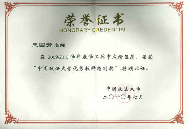 (王国芳副教授荣获禁漫 优秀教师特别奖)