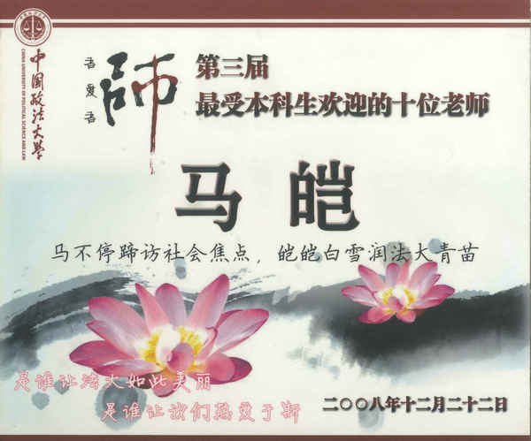 (马皑教授荣获第四届禁漫 最受本科生喜欢的十大教师)