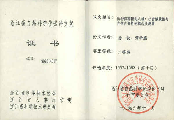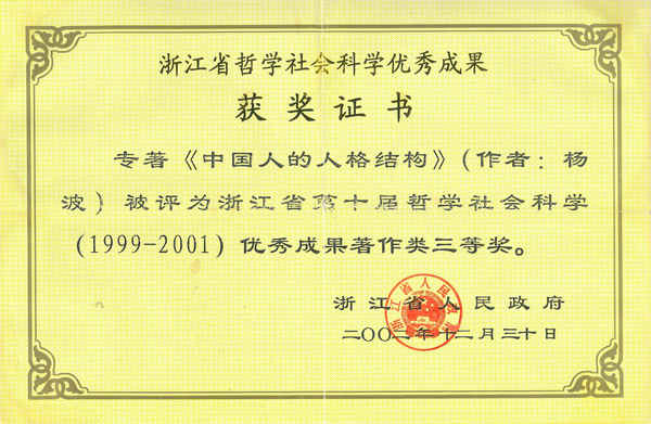 (杨波教授荣获浙江省第十届哲学社会科学优秀论文三等奖)