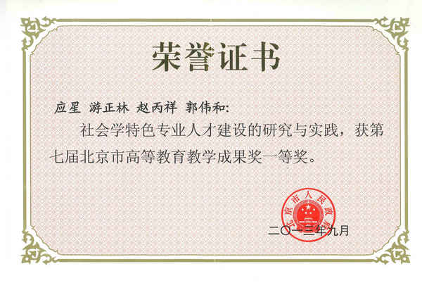 (应星教授、游正林教授、赵丙祥教授、郭伟和教授获得北京市高等教育教学成果一等奖)
