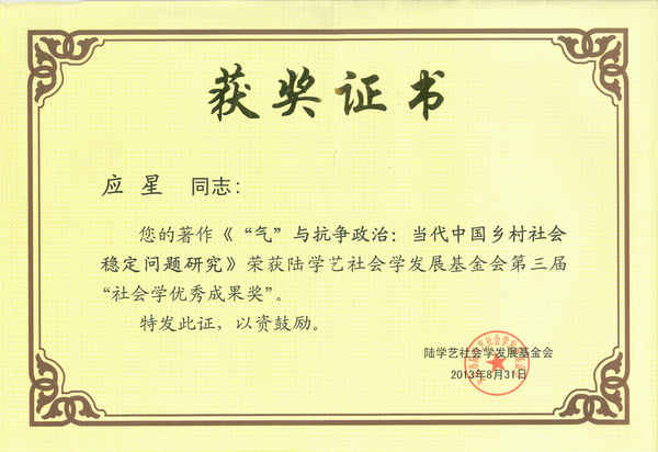 (应星教授荣获第三届陆学艺社会发展基金会社会学优秀成果奖)
