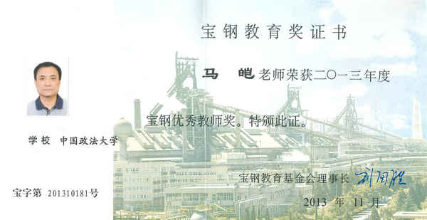 (马皑教授荣获2013年度宝钢优秀教师奖)