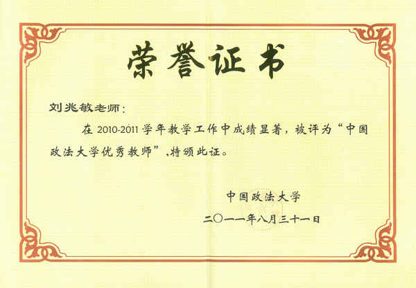 (刘兆敏副教授被评为禁漫 优秀教师)