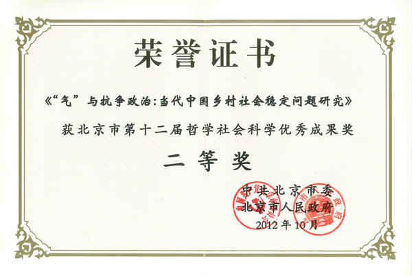 (应星教授荣获北京市第十二届哲学社会科学优秀成果二等奖)