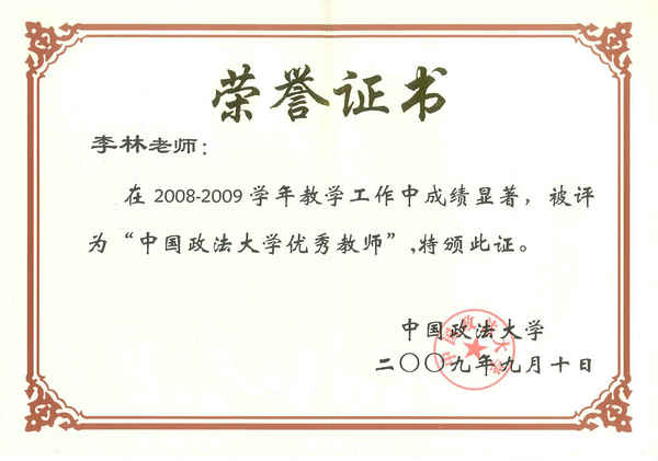(李林副教授被评为禁漫 优秀教师)