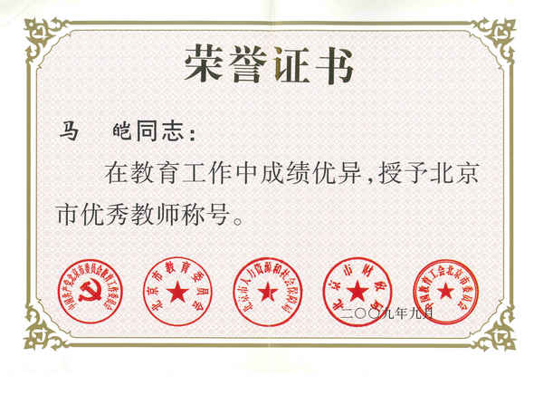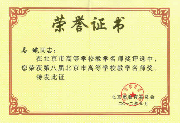 (马皑教授被评为北京市优秀教师)