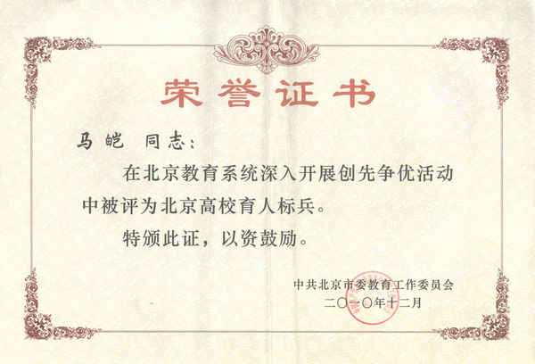 (马皑教授被评为北京市高校育人标兵)