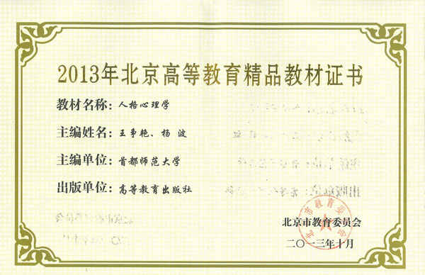 (杨波教授编写教材被评为北京市教材)
