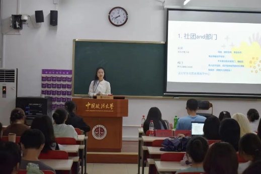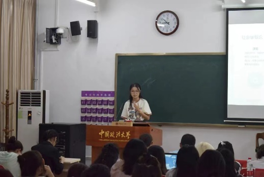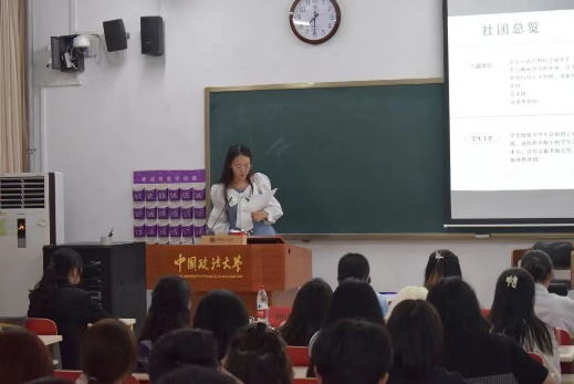 大会尾声,段鸥琰师姐为同学们分享了自己作为学生组织的部长与主任的工作经历与经验,并祝愿同学们可以在法大享受美好的青春时光。