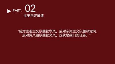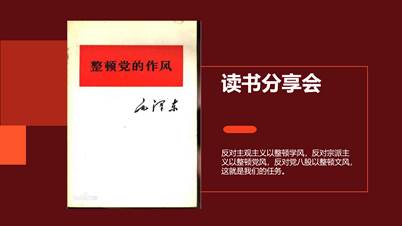 然后在党支部书记王天琦的带领下,我们学习了该书的主要内容和精神。本书中提出“反对主观主义以整顿学风,反对宗派主义以整顿党风,反对党八股以整顿文风,这就是我们的任务。”本书分为四部分,--反对主观主义以整顿学风、反对宗派主义以整顿党风、提倡理论和实际相联系、整风运动的宗旨是“惩前毖后,治病救人”。