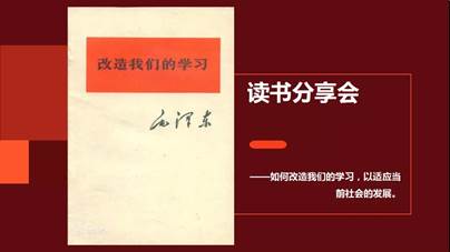 参加读书会的每位同志都分享了自己的感想,纷纷表达了要改造自己的学习的决心。作为大学生党员,在学习中,需要我们坚持实事求是的学习态度,把握时代潮流,树立远大理想抱负,不忘初心,砥砺前行。