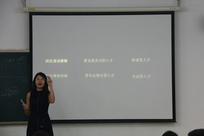 “不是拿到了一个学位,上完了一门课,职业就准备好了的。”以此为始,薛丽娟建议同学们在校期间要多参与实践。指导活动从三个方面展开——投递简历与面试、确定事业方向以及如何脱颖而出。