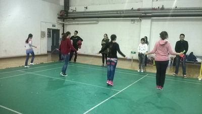 趣味运动会包括了羽毛球、跳绳、踢毽子等深受大家喜爱的项目,同学们踊跃报名、积极参与。比赛在充满欢声笑语的气氛中展开,赛场上,参赛选手们全身心投入比赛,展身手灵活矫健大汗淋漓;赛场边,观赛同学津津有味欣赏比赛,为选手欢呼雀跃拍照留念。经过两个小时激烈但友好的争夺,赵熹成和李沫、韩盟盟、李涛四位同学凭借良好的基础和高水平的发挥,分别在羽毛球、跳绳、踢毽子比赛中拔得头筹。