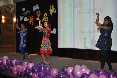 随后,梁滋璐同学代表全体新生上台发言,她侃侃而谈,从最初的好奇和期待到收获一份归属感和温馨感,从对各个课程的第一印象到对自己未来的期许,她的发言在“吾将上下而求索”的誓言中结束,而同学们的大学之旅也正徐徐展开。接下来的歌曲串烧使全场的气氛再次活跃起来,陈钰同学的一首《情歌》,兰四402的同学们合唱的《天高地厚》以及兰四206带来的《奔跑》得到了全场雷鸣般的掌声;方言版诗朗诵《最遥远的距离》令人耳目一新;小品《国际饭店》也给同学们带来了许多欢笑;各民族的同学也都纷纷亮出了独具特色的舞蹈节目,藏族舞蹈《青春踢踏》,新疆舞蹈《美丽的姑娘》展现了别具一格的文化魅力;单簧管独奏,魔术表演让在场的师兄师姐也都不经叹服;随即而来的视频配音节目,搞笑的剪切搭配精妙的台词,更让人捧腹不已;由大二的尚尔东同学和大三的刘树榆同学带来的《忽然之间》也为新同学献上了来自辩论队的祝福。