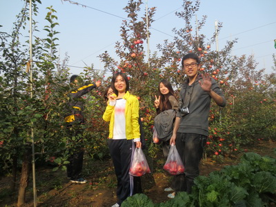 系列集体活动首先由“果园采摘”拉开序幕。在长势旺盛的苹果园,同学们精心挑选想要采摘的苹果,伴随着欢声笑语和相机的咔嚓声——大家纷纷和自己的战利品“大红苹果”合影。采摘结束,今天的“大戏”正式开始——登蟒山比赛。一千五百级的登山台阶上留下了禁漫