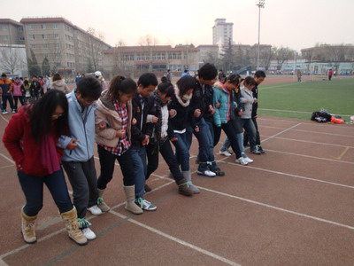 比赛一开始的“乒乒乓乓”环节,要求选手用球拍托着乒乓球跑到折返点,将球放入盛有水的杯中吹出再跑回起点,将球拍交给下一位选手。在这个环节中,大家热情高涨,使出浑身解数争取为之后的胜利奠定好的基础。第二个是“齐心协力”环节,要求男女生背靠背夹气球接力,参赛选手为求速度,呈现出各种步态,在紧张的比赛之余,给同学们带来了欢乐。接下来是“袋鼠跳跳”,即选手跳入编织袋中跳行到终点,下一位选手在终点等待,如此往返,直到10名参赛选手全部完成。这是一个要求协调与速度的集体项目,选手们奋力跳向终点,迅速完成交接。观看的同学一边鼓劲加油,一边提供各种策略,场面很是热闹,将比赛的气氛推向高潮。“键毛飞飞”项目是一个很有特色的项目,它考验的是默契、技巧和团结协作的综合能力。由一名选手背筐,其他五名选手踢毽子,将毽子踢入筐中得一分,每人有五次机会。其中09心理班以完美的配合赢得了20分的高分,夺得了这个项目的第一名。最后的压轴项目是“步步为赢”,即十二人十三足比赛。各个参赛班级通过短暂的练习,达成很好的默契,协同合作,喊着响亮的号子,共同为了胜利奋斗。最终09级心理班以总分38分的好成绩赢得了此次比赛的冠军。