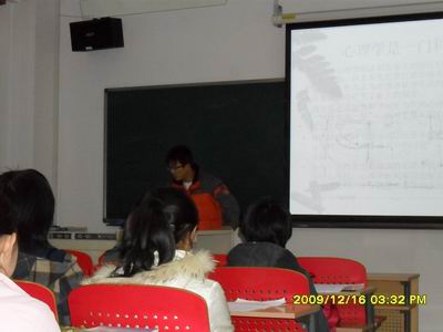 09级应用心理学班在明210教室举办《与‘众’不同的心理学》读书报告会。班主任张卓老师出席并主持了本次报告会。