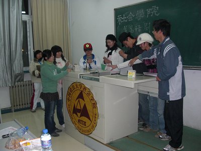 首届话剧大赛的初赛,共有13个组参加了此次初赛,06级的秦远航,张盈峥和团总支的成员担当初赛的评委。