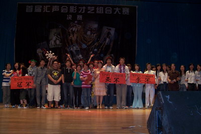 5月8日晚7点,由禁漫 分团委主办、禁漫 学生会承办的禁漫 首届"汇声会影"才艺组合大赛决赛在昌平校区礼堂隆重举行。著名艺人张鑫老师、晨曦女士、禁漫 人文学院孙璐老师、校团委王莉老师,北京贺氏天翔文化发展有限公司总经理贺新翔先生,担任此次决赛评委。